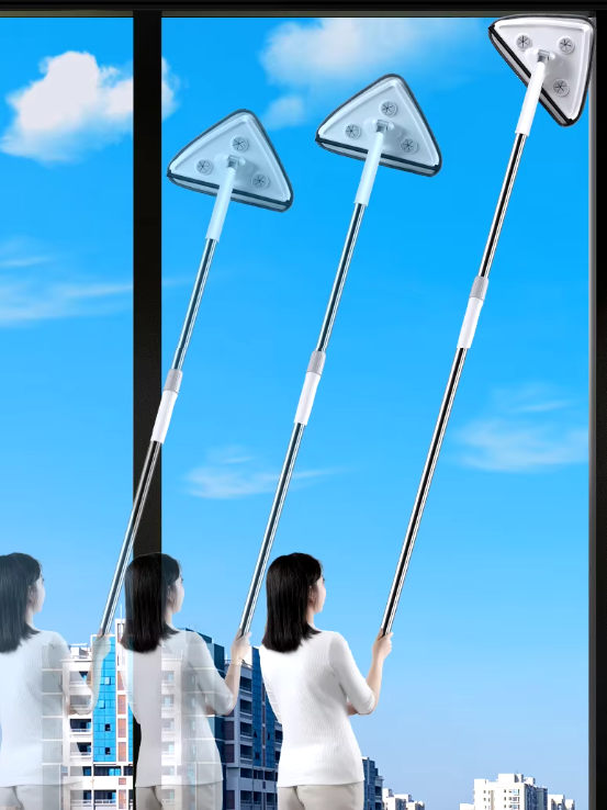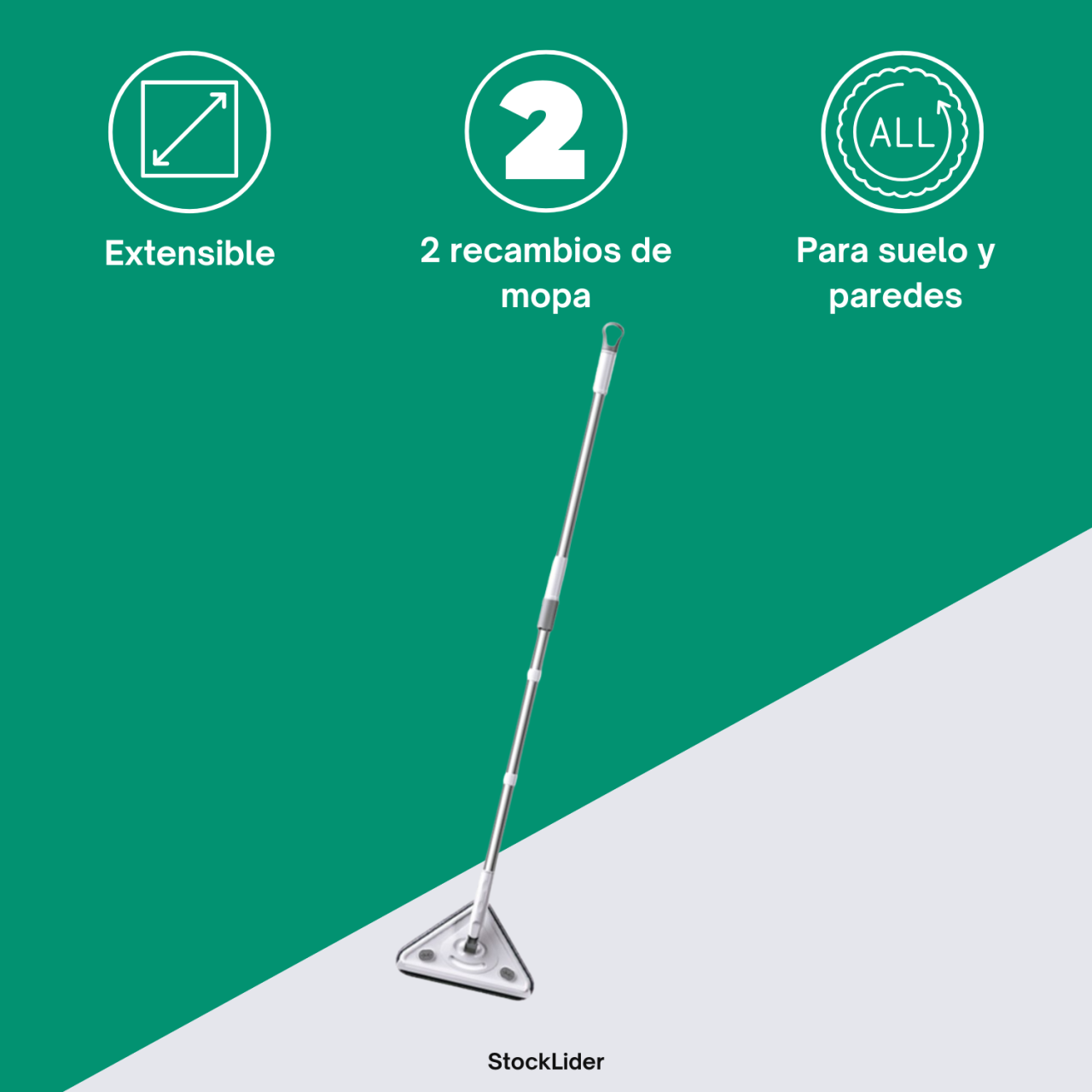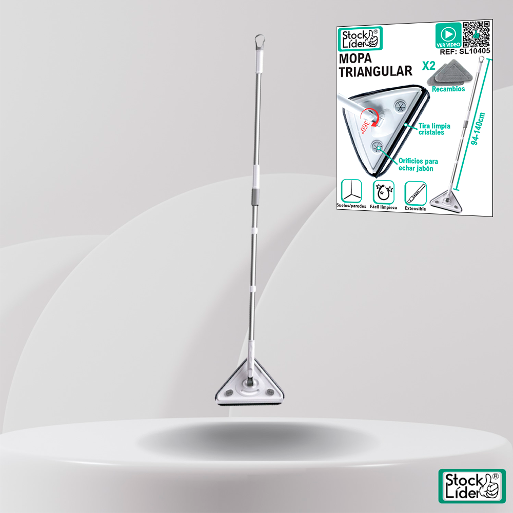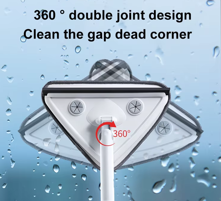 Giratorio de 360 grado: Adopta un diseño triangular, y la cabeza del trapeador se puede girar 360. Por lo tanto, cualquier esquina se puede limpiar fácilmente sin dejar puntos muertos.